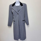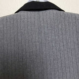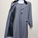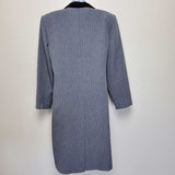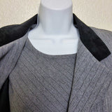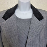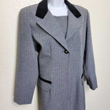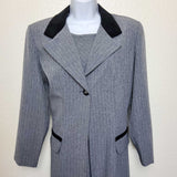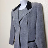 Perceptions Gray 2-Piece Pinstripe Dress Suit, Women's Size 10. This set features a velvet collar and trim. Fabric tag and wash tag are missing; dry cleaning recommended. Excellent condition!!