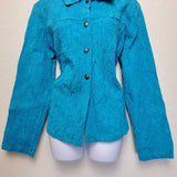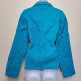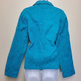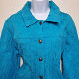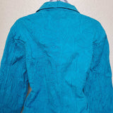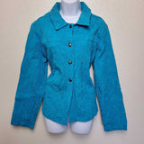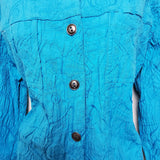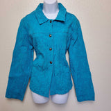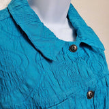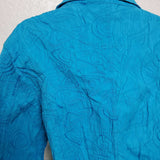 Mirror Image Blue Embroidered Button-up Shirt with Scrunched Look, Women's Extra Large