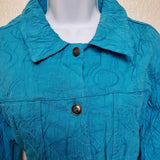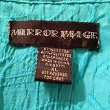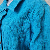 Mirror Image Blue Embroidered Button-up Shirt with Scrunched Look, Women's Extra Large.