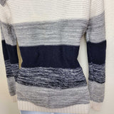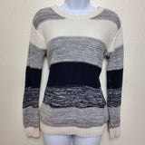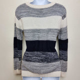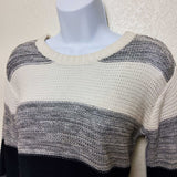 Forever 21 White, Grey and Black Striped Pullover Sweater, Women's Small.