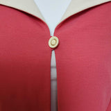 Henry Lee Pink Blazer with White Collar, Women's Size 10. Beautiful blazer! This jacket looks like a shrimp/pink color, but has also been called orange. Tags containing fabric & washing information were removed, so this information is unknown.