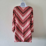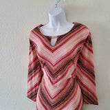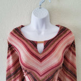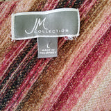 JM Collection Pink and Maroon Striped Blouse with Metallic Threading, Women's Large.