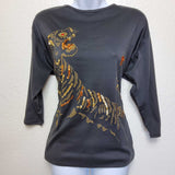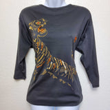 Le Chois Brown Sequined Tiger Blouse, Women's Large. Lovely blouse with tiger print and sequin embellishments. For the big cat lover in your life.