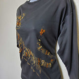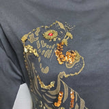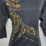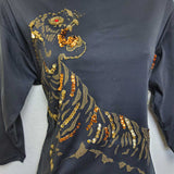 Le Chois Brown Sequined Tiger Blouse, Women's Large