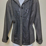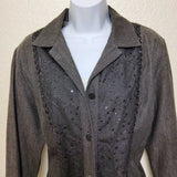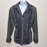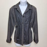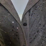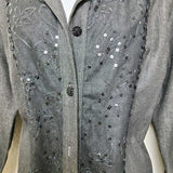 Saint Germaine Charcoal Embroidered and Sequined Long Sleeved Button-up Shirt, Women's Large.