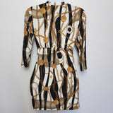Sirens Gold and Black V-Beck Blouse, Women's Large. Long-sleeved blouse with gold chain graphics.