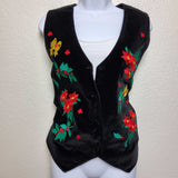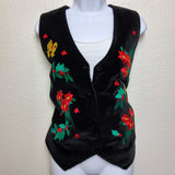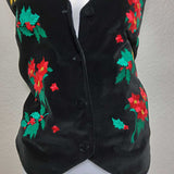 Westbound Black Christmas Vest with Embroidered Holly, Women's Petite Large. Get in the spirit of the season with this festive top!!