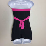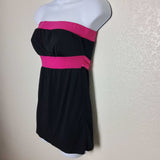 Zoey Beth Black Strapless Tie-Back Top with Hot Pink Trim, Women's Small.